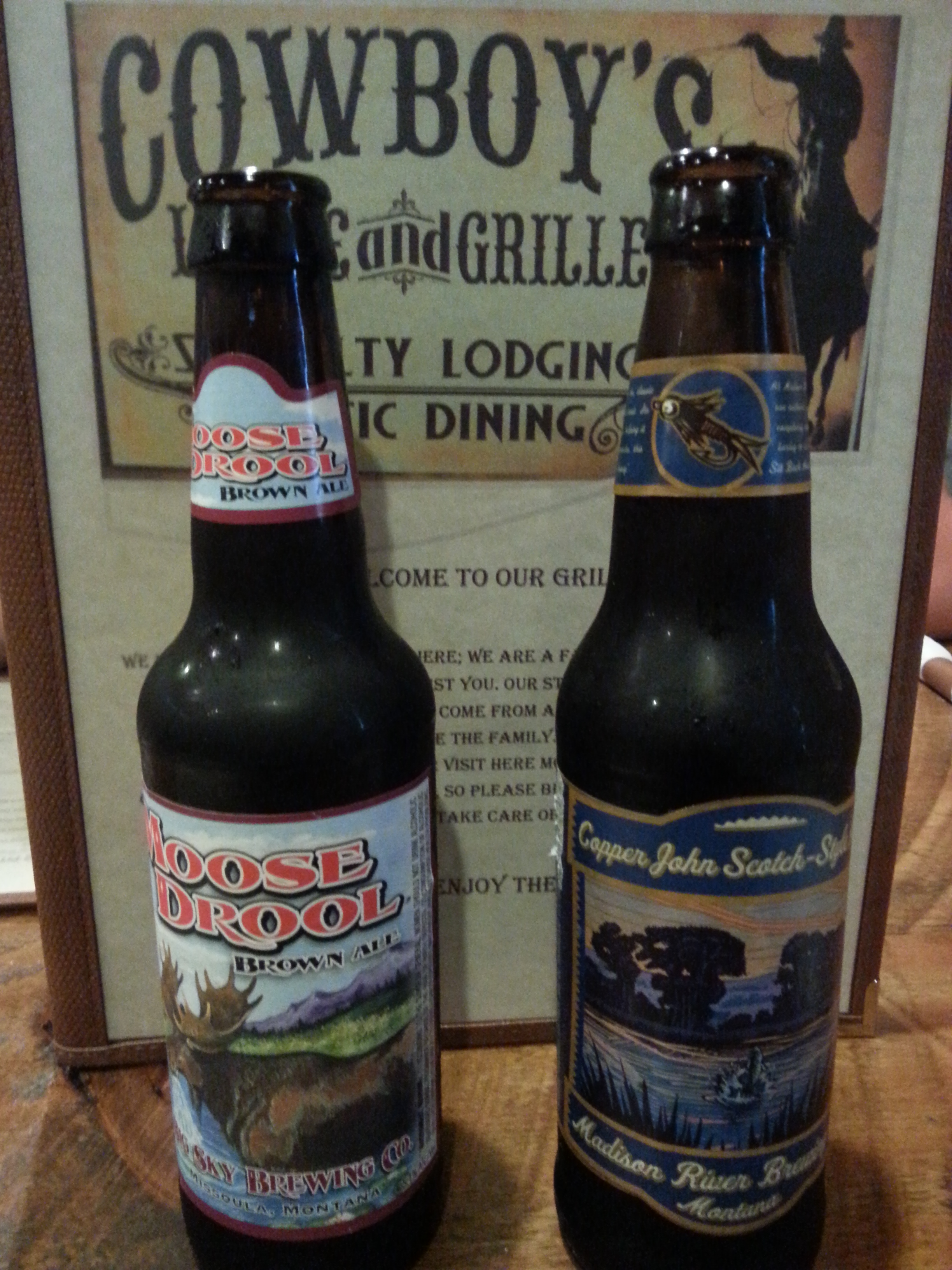 For the other two actual Montana brews, how could you not like products from breweries called Big Sky and Madison River Brewing.  The Moose Drool from Big Sky, with an ABV of 5.1% and 26 IBU’s made for a fine tasting Brown Ale. The Scottish Ale from Madison River was so good that I had to have another, causing me to miss a chance to try something else. With an ABV of 7% and low bitterness of 19 IBU’s, this was my favorite of the trip.